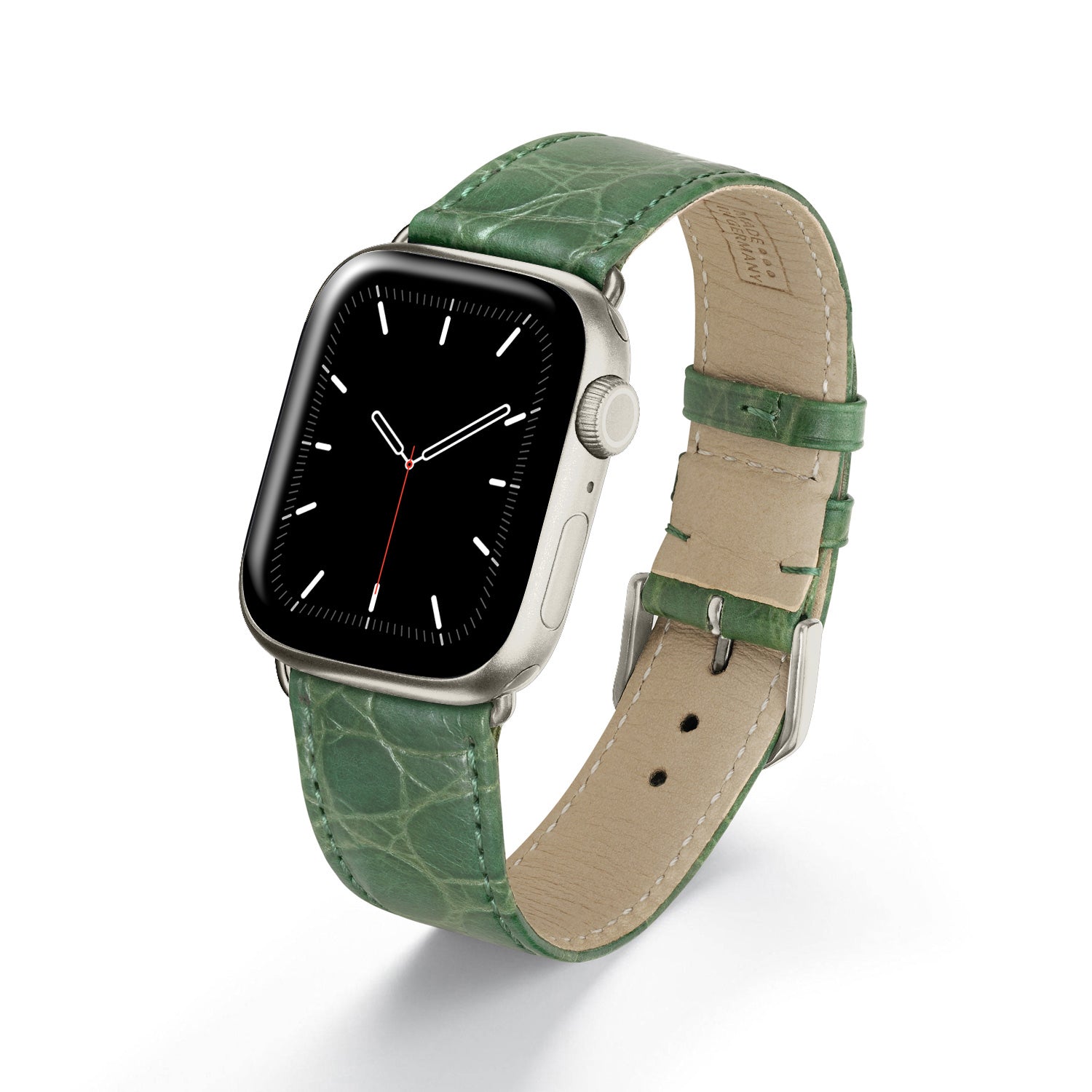 Si tu Apple Watch® te avisa de un ritmo cardíaco elevado, podría deberse a esta pulsera excepcionalmente hermosa. Una reconocida marca de lujo fabricante de bolsos finos lo hizo exclusivamente para nosotros a mano en Alemania con el mayor cuidado.